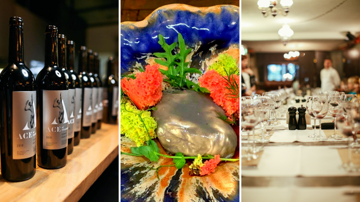Трамінер W by Stakhovsky (біле сухе) + їстівний камінь (ніжний мус із судака та устриці у лимонній глазурі)
