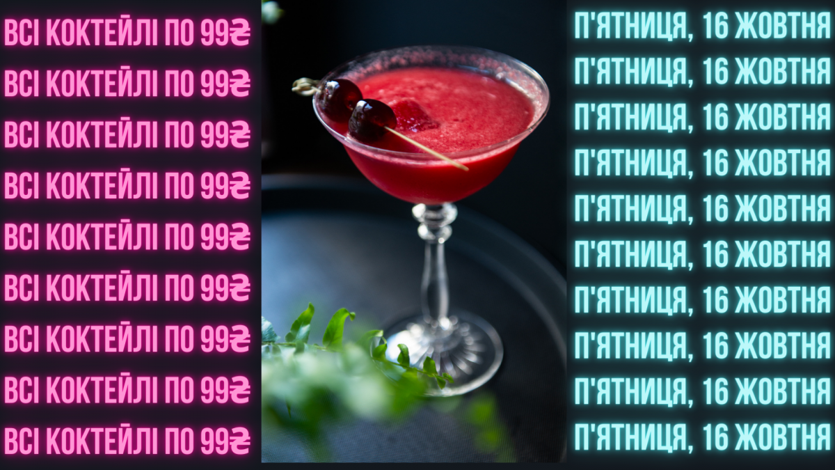 Бо будь-який коктейль, який припаде тобі до душі, коштуватиме лише 99 гривень