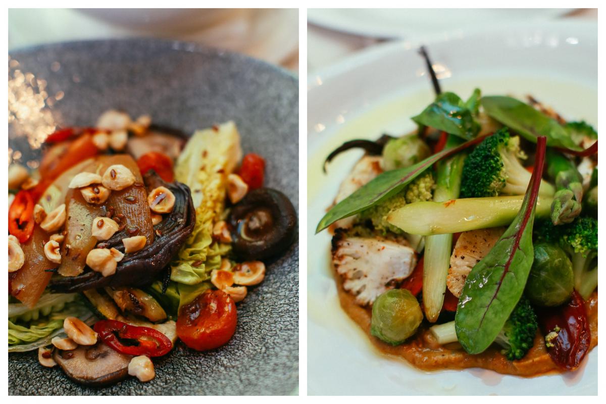 Соте з печених овочів з кремом баклажан: перець капі, синя морква, брюссельська капуста, цвітна капуста і броколі — 179 грн