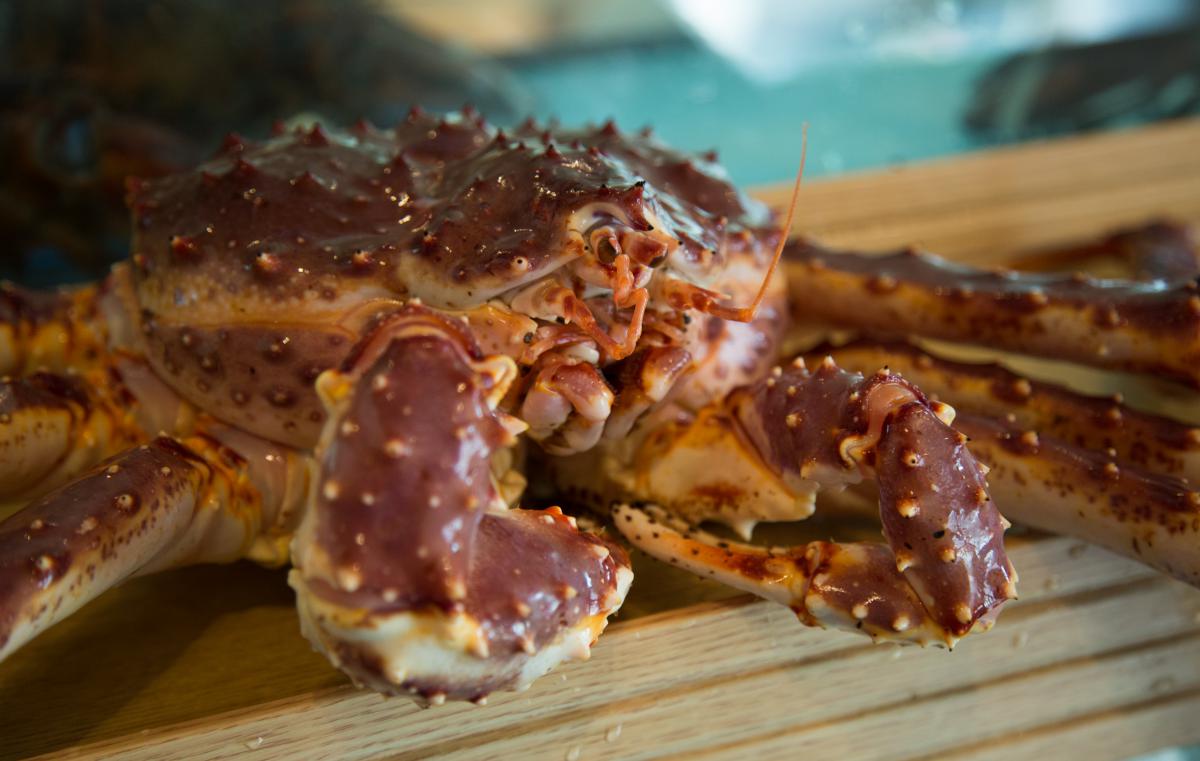 Королівський краб важить декілька кілограмів і, беззаперечно, вважається чи не найбільшим делікатесом серед морепродуктів. Ми пропонуємо замовляти його на компанію – на 2-4 особи. Як все це відбувається? Ви приходите та обираєте краба в акваріумі і готуєтеся до неймовірної вечері, під час якої при приготуємо для вас 4 страви - салат з крабом-темпура, суп з м'ясом краба, вершкове соте у панцирі краба та фаланги краба, запечені з овочами.