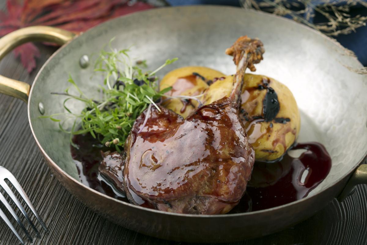 Качина нiжка у cоусi з червоного вина з запеченим яблуком - 229 ₴