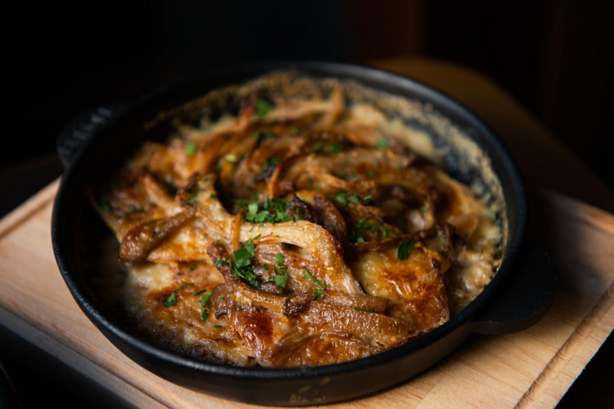 Картопляні деруни, запечені у сметанному соусі з грибами – 99 гривень