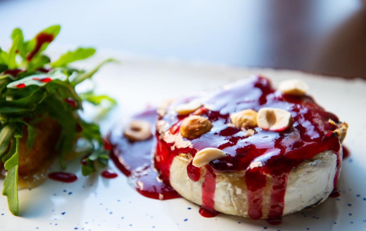 Камамбер запечений на вугіллі з карамелізованною грушею та малиновим кулі – 149 гривень