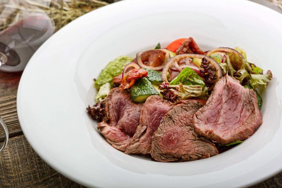 Оновилися салати. Ось, наприклад, страва для осені - салат з яловичою вирізкою. Ви самі обираєте для м'яса рівень прожарювання – ми подаємо шматки соковитої вирізки з базиліком, салатом ромен, свіжими та в’яленими томатами і прованськими травами.