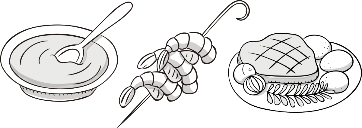 Звісно, м'ясо. Філе-мільйон з соусом порто (в основі – класичний демігляс та портвейн). Оссобуко теж подаємо з ним. Тільки, м'ясо готуємо не на грилі а томимо принаймні 6 годин – в червоному вині з анісом, бадьяном, цибулею, морквою та яблуками.