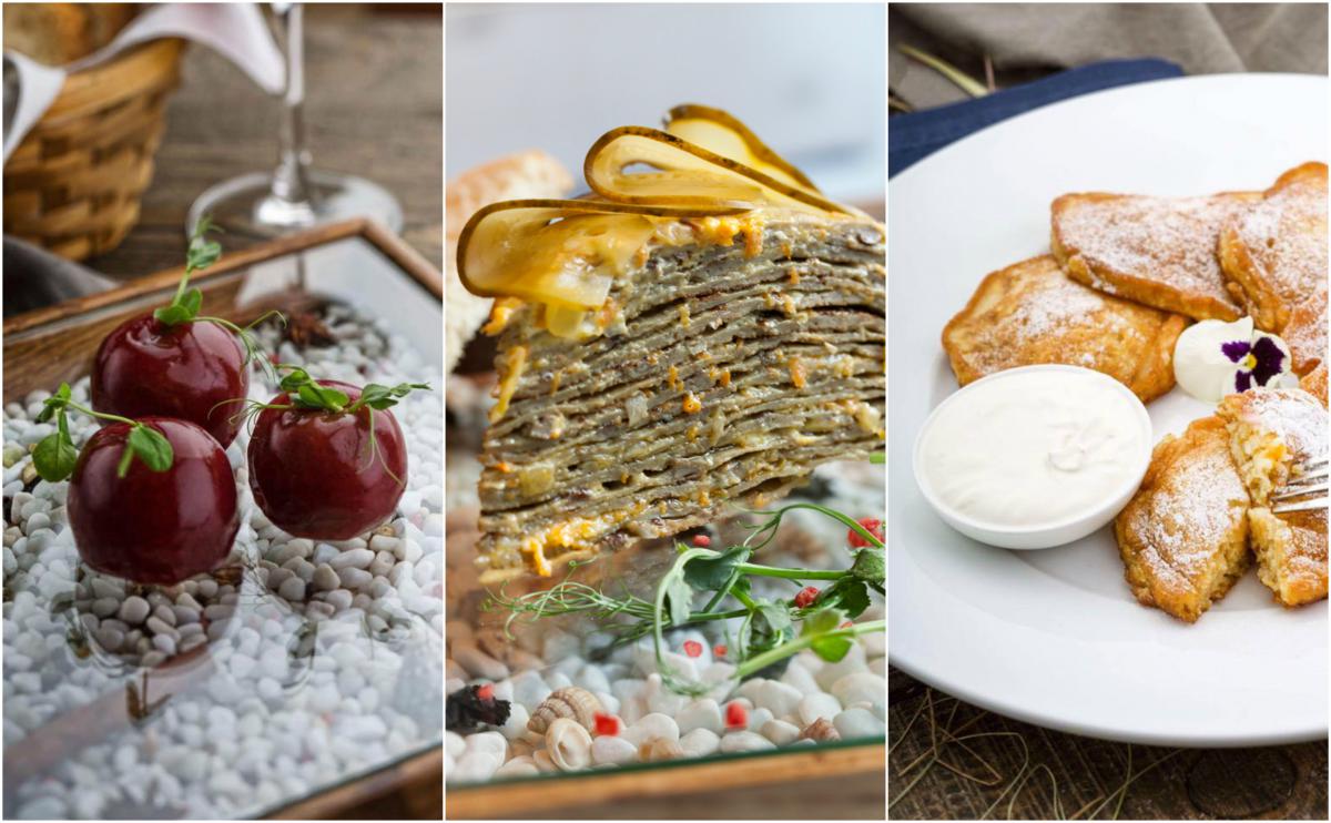 Паштет з кролика в ягідній глазурі (85 ₴), печінковий торт із курячої печінки з тостами (89 ₴), гарбузово-яблучні оладки зі сметаною (55 ₴)