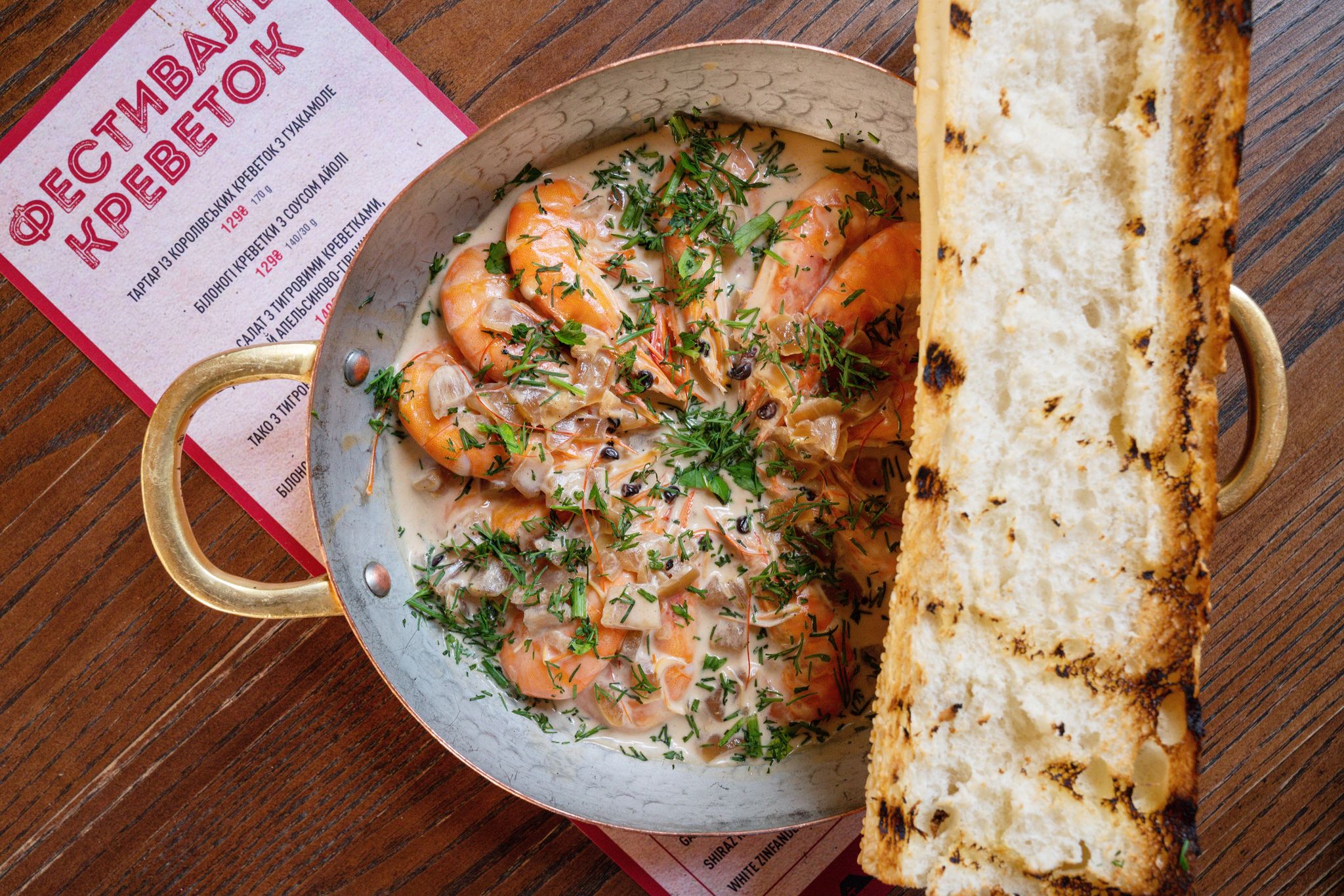 А ось і фінгерфуд! Білоногі креветки з соусом айолі. Страва відсилає до класичного креветкового коктейлю — гастрономічного хіта в Британії 60-х - 80-х. Просто, геніально, must have для всіх foodies міста. Коштують креветки з айолі - 129 гривень.