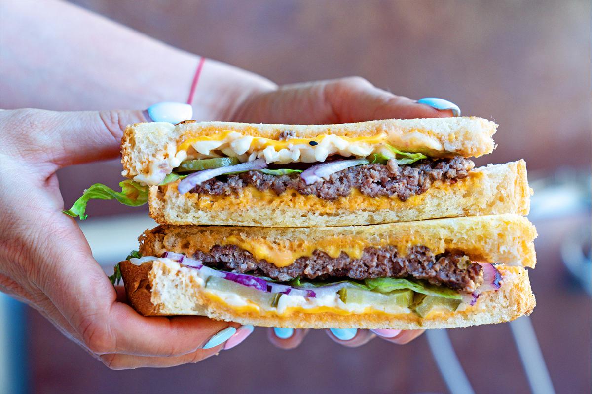 - Мелт із соковитим біфштексом з пікантним маринованим огірочком та сиром — 98 грн