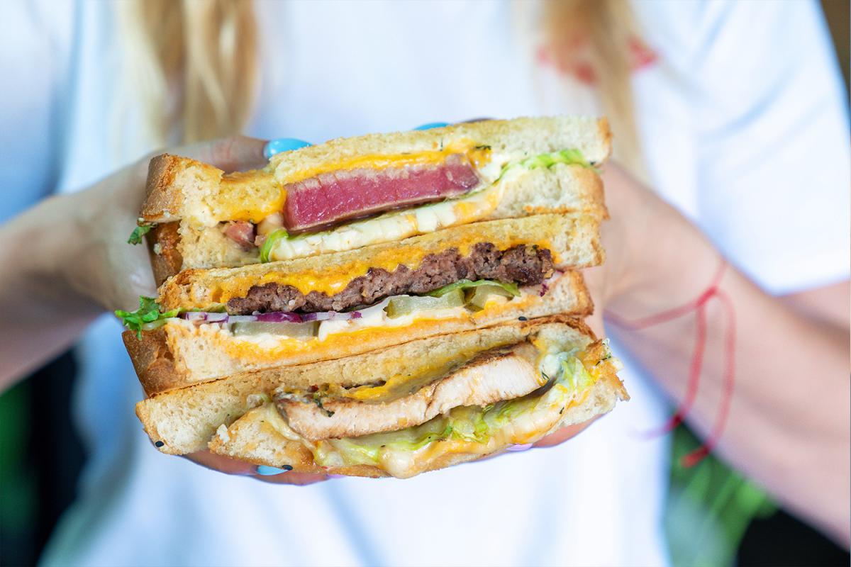 Як же взяти і не заточити велику гарячу канапку з делікатесною начинкою і сиром, який так ідеально тяяяягнеться?