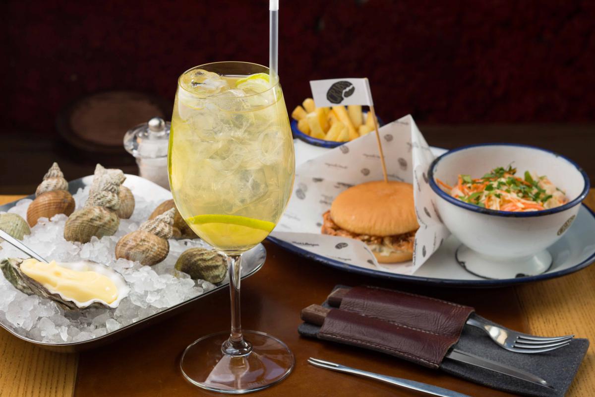 Молюски-булоті з соусом айолі, бургер з цілим м'якопанцирні крабом, Лінчбургскій лимонад (Jack Daniel's, тріпл сек, спрайт, лимонний фреш, лайм)