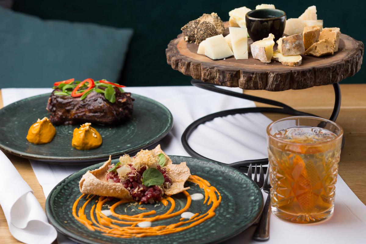 Тартар з яловичини і фуа-гра, сет сирів від українських фермерів (з презентацією-дегустацією від професійного фромаж'є), шия ягняти з пюре з баклажанів, коктейль Джек Тонік (на віскі Jack Daniel's)
