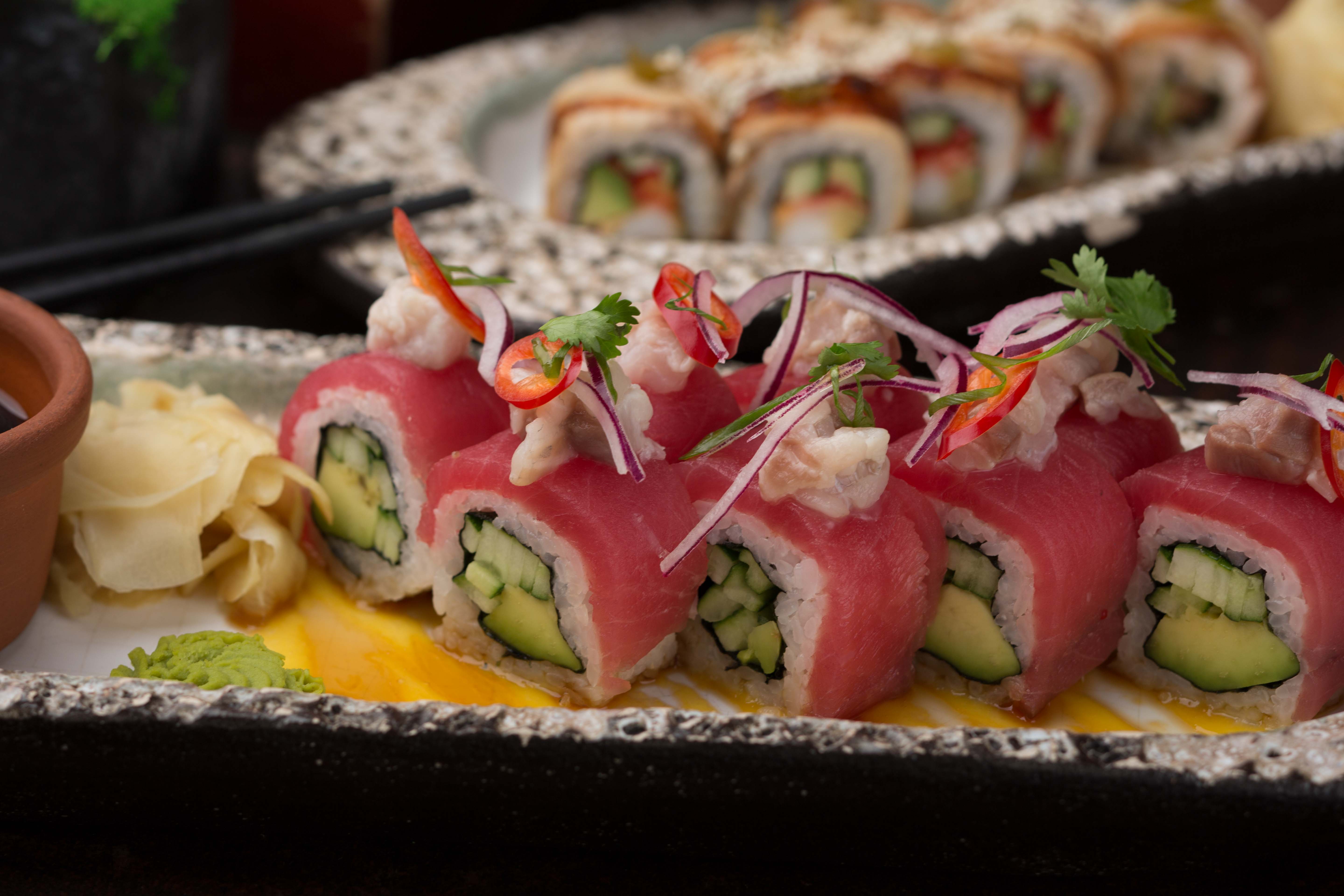 В Oxota na Ovets і Ronin можна влаштувати вечір Nikkei і замовити кілька видів суші по 49 гривень та ролів: класику з лососем та сиром "Філадельфія", креветкою темпура або з тобіко й крабом. Ціни - від 198 до 335 гривень за порцію.