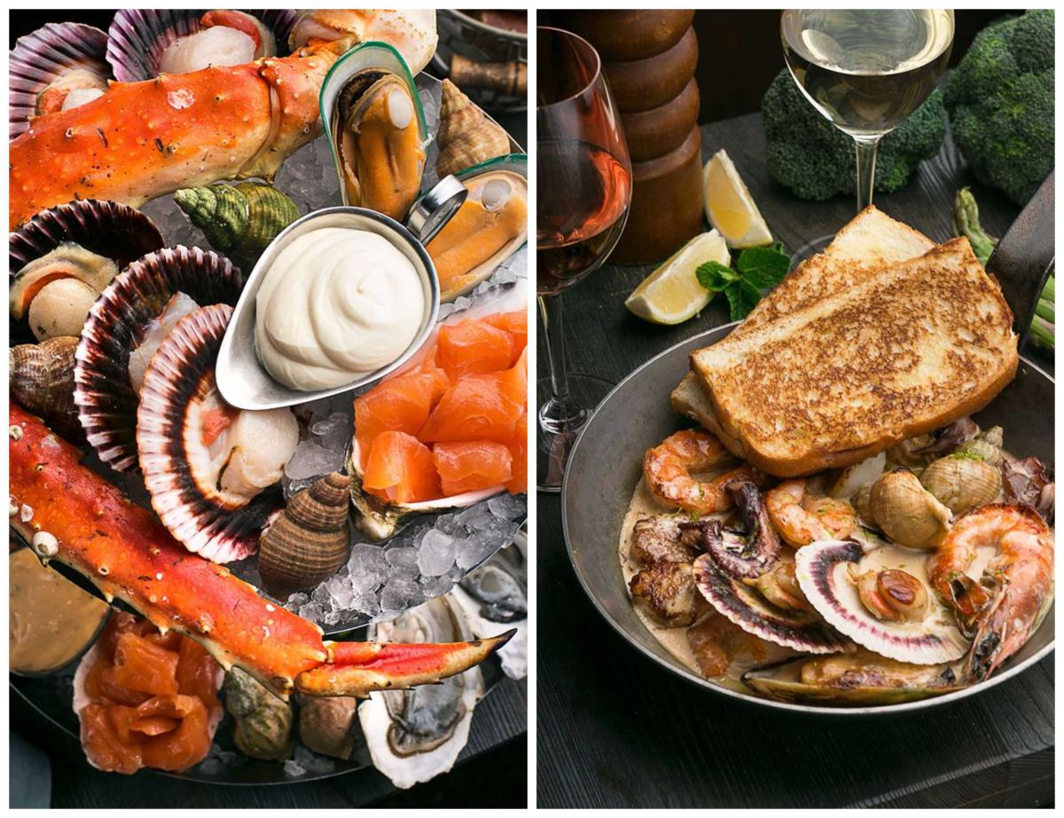 Устричні шоти та стейки з королівського краба.