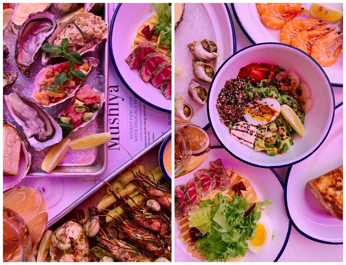 Так, на Івана Мазепи, 3 тепер повноцінний сервіс, ресторанні подачі та, звісно, свіжі морепродукти та страви з них за 1-3 євро. Приходьте на сніданок за картопляними панкейками з яйцем, крем-чилі, свіжими овочами та слабосолоним лососем (79 гривень) та баночку червоного кав’яру з багетом та вершковим маслом (69 гривень), обідайте, замовляючи сендвіч зі скумбрією гриль (49 гривень) або сендвіч зі стейком тунця та картопляними діпами (89 гривень).