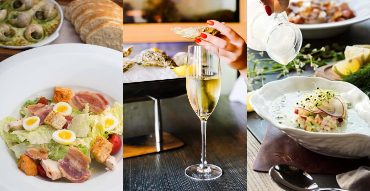 Спочатку – класичний салат «Цезар» з куркою та келих ігристого. Після – холодна окрошка з м’ясом королівського краба. Ідеально для спекотного липня..