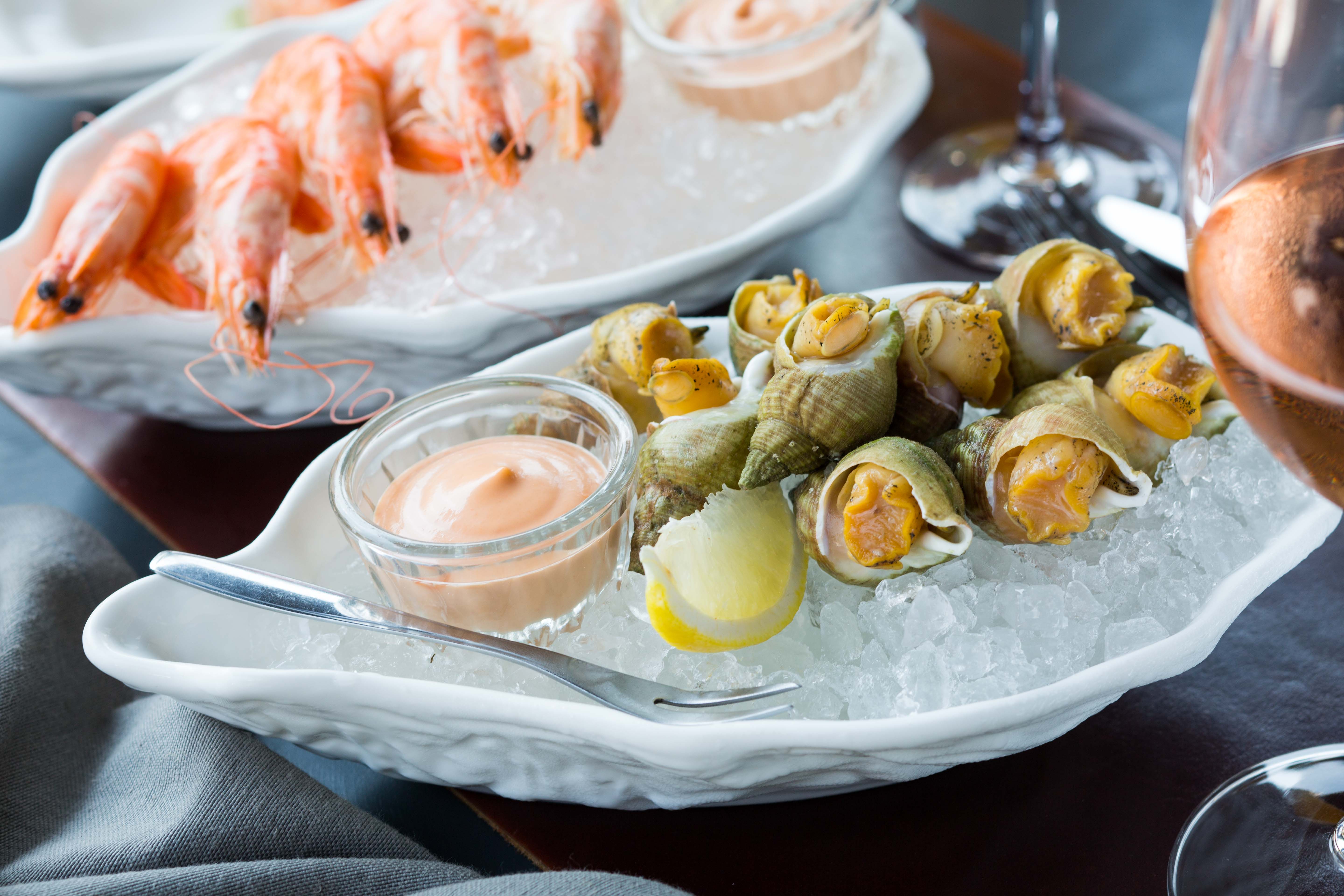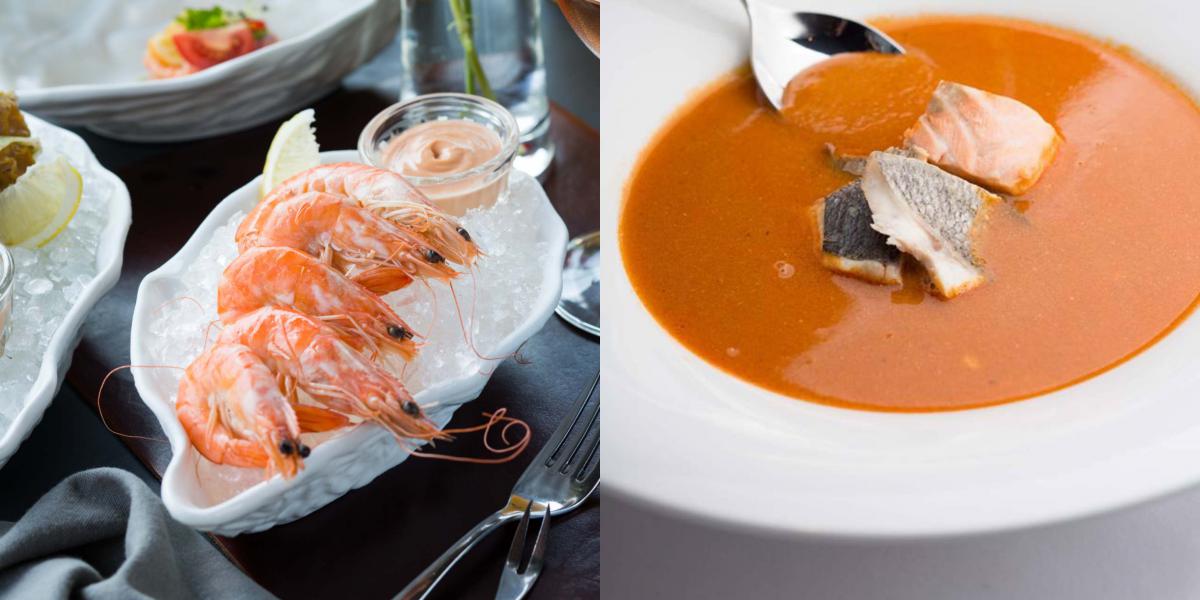 Спочатку - ідеально свіжі морепродукти на льоду. Делікатесні білоногі креветки або ж равлики-булоти. Потім - насичений суп з трьома видами рибами.