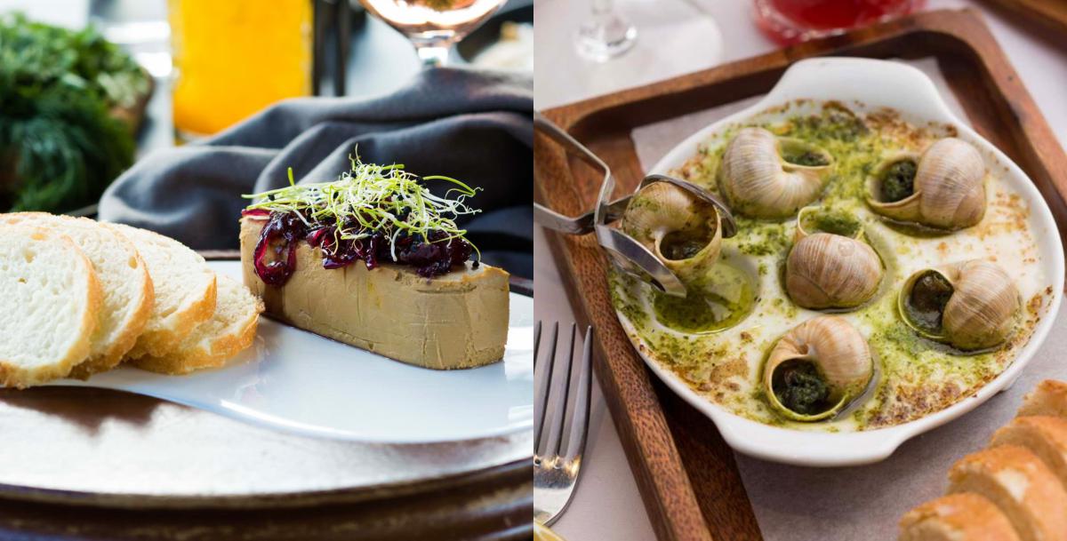 Класична вечеря в французькому стилі. Ескарго – запечені з духмяними травами равлики, хрусткий багет та легкий паштет з курячої печінки.Класична вечеря в французькому стилі. Ескарго – запечені з духмяними травами равлики, хрусткий багет та легкий паштет з курячої печінки.