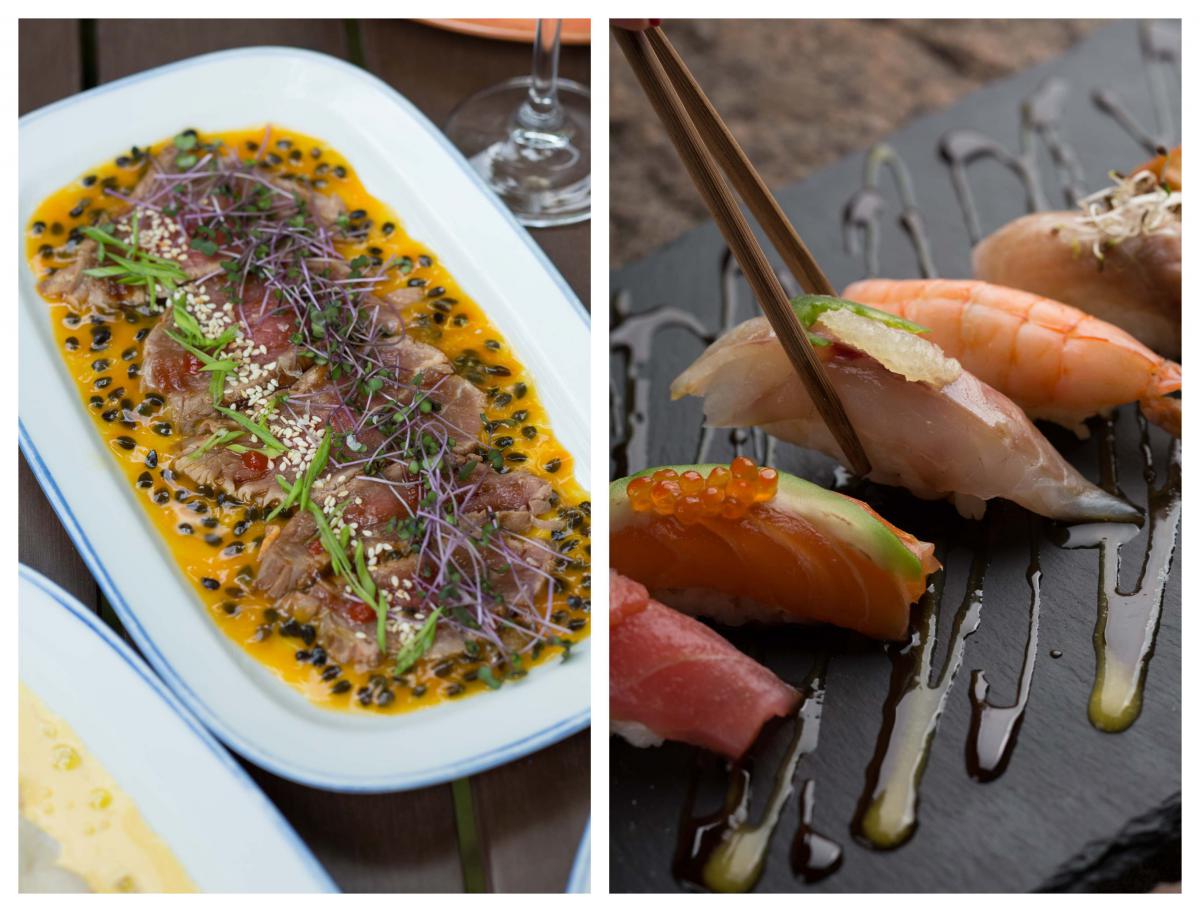 Вечеря, максимально насичена екзотичними смаками – це Nikkei-суші з лососем, червоним кав’яром та авокадо та з сібасом, халапеньо і лаймом, тонкі скибочки мармурової яловичини в соусі з маракуйї та келих прохолодного вина.