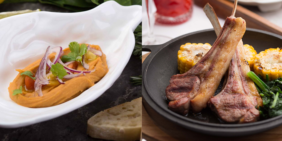 Хумус із нагуту з печеним гострим перцем + реберця ягняти зі смаженою кукурузою + компот із літніх ягід = 139 гривень
