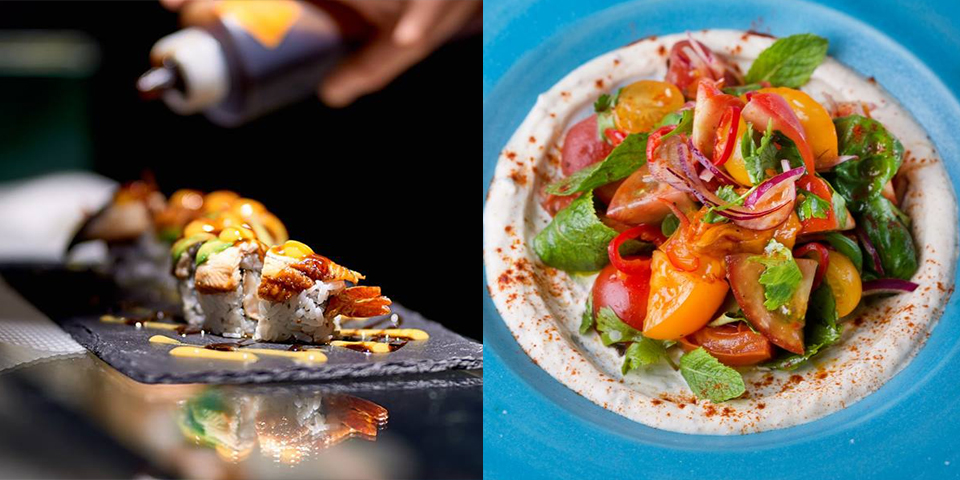 Nikkei-рол футомакі з вугрем + салат з томатами + морс = 139 гривень