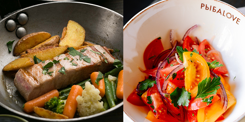 Салат із п'яти видів томатів + філе тунця + цитрусовий лимонад = 139 гривень
