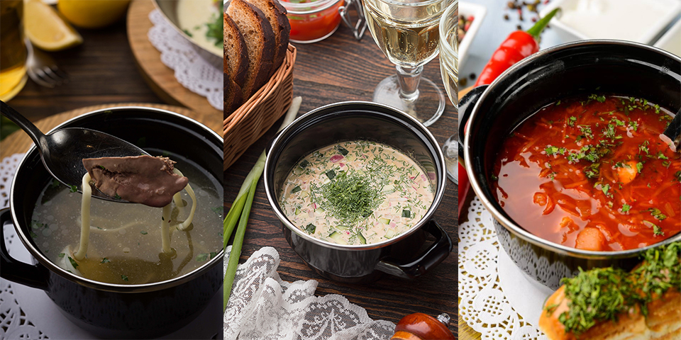 А тепер вже можна попоїсти. Починаємо, як годиться, з першого: в нас тут борщик (59₴), "уха не петухе", за традицією, з різною чорноморською рибкою (89₴), курячий бульйон з тельбухами та локшиною (69₴) і окрошка, бе якої й літа не буває (39₴).