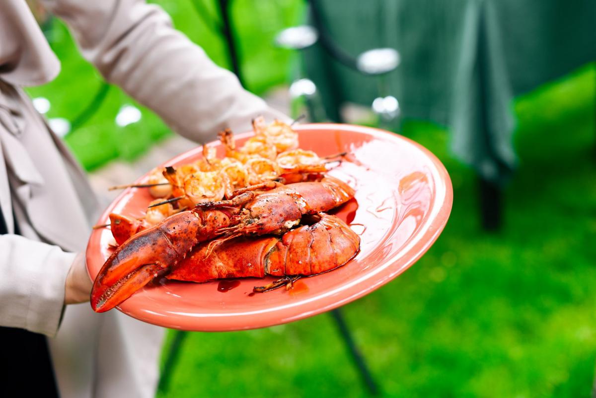 Щосуботи тут працює спеціальне пікнік-меню. Устриці – по 29 гривень, шашлички з мідій, восьминогів, лангустинів – по 59 гривень, перепілки – по 79 гривень, а половинки лобстера – по 199.