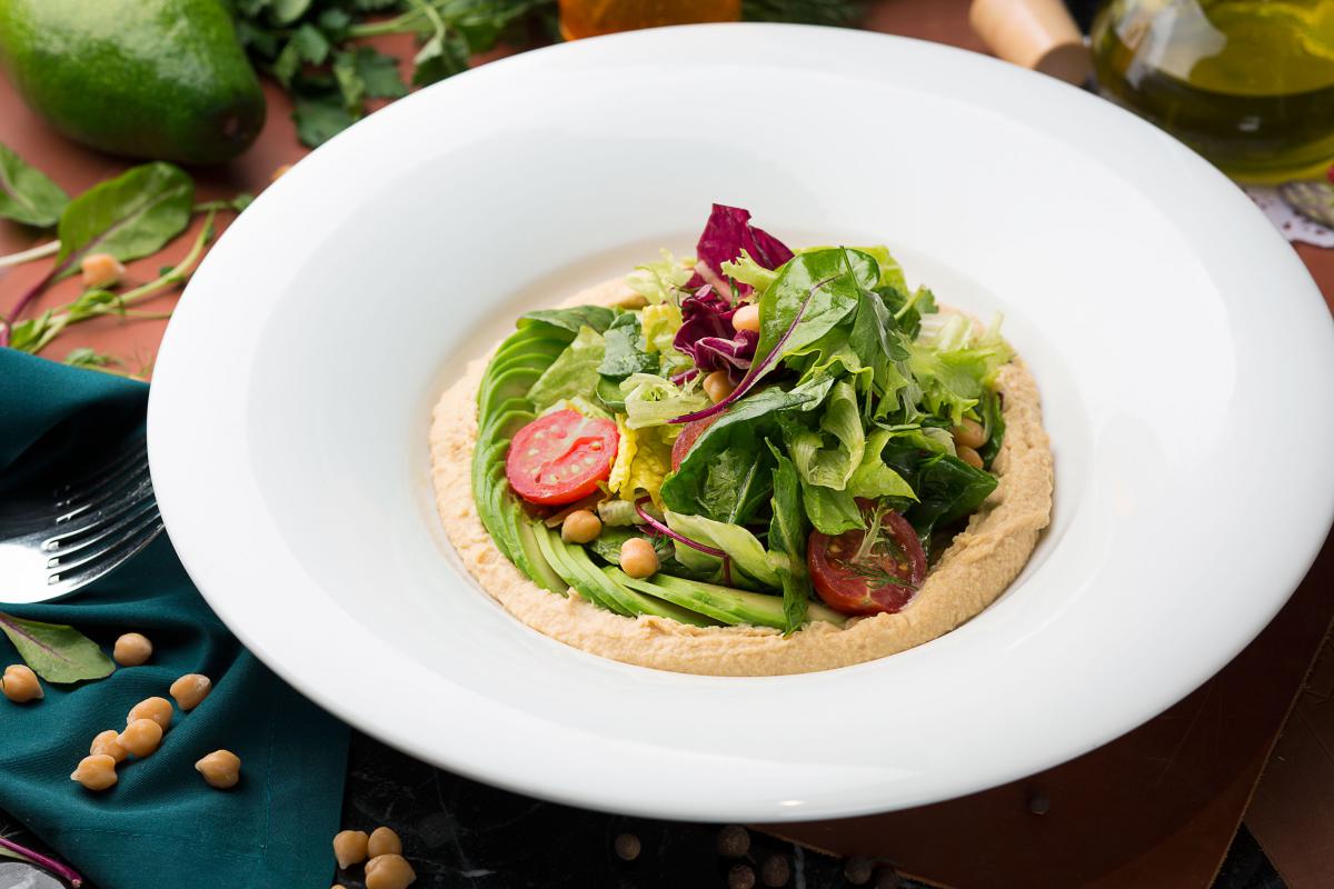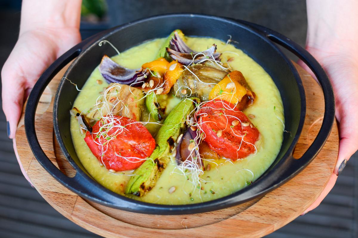 Взяти добірні овочі та коренеплоди. Запекти у хоспері. Додати кілька крапель оливкової олії. Обрати «подушку» з ніжною текстурою: крем з зеленого горошку або йогурт. Насіння і прянощі. Поєднати все це. Просто? Дуже. І неймовірно смачно, до речі.