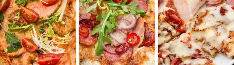 5 неаполітанських піц і пляшка вина у подарунок! Маргарита + Карбонара + 4 сири + суперм'ясна BBQ + Di Mare з лососем та креветками = 599 гривень.