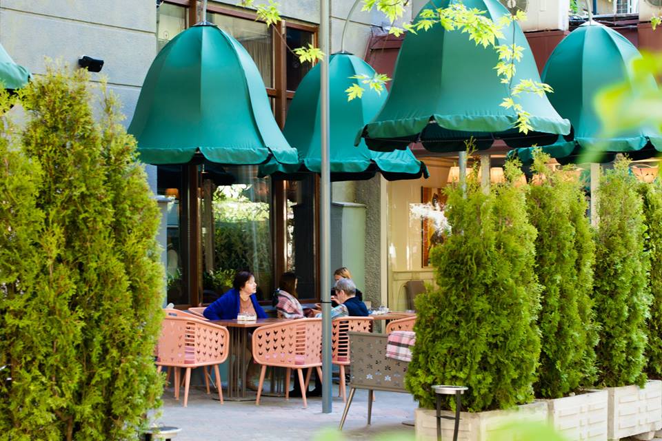 Святковий Київ здається ще святковішим у тихому сквері на Городецького. Якихось 2-3 хвилини від Майдану — і тераса під дзвониками, легкий джаз, котлета по-київськи та ігристе...