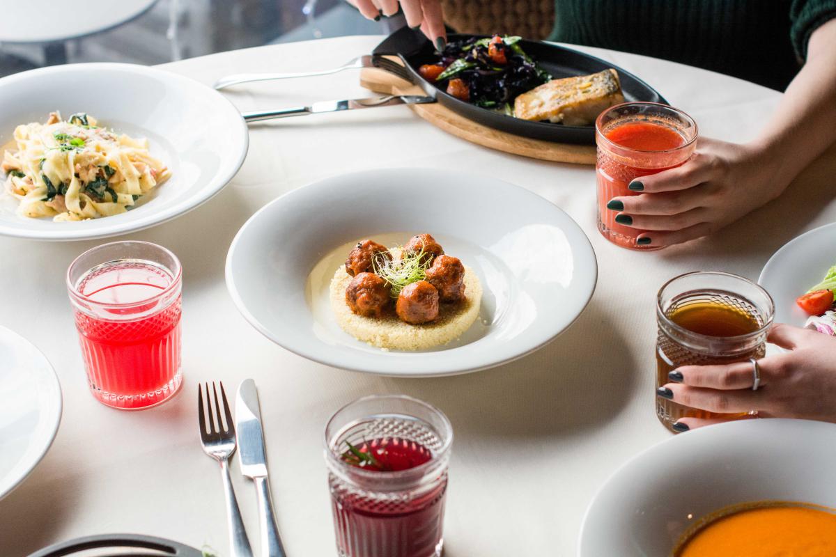 А ось ще один сценарій обіду: м’ясні кульки з кускусом та томатним соусом «шакшука», салат з куркою гриль під соусом теріякі та морс. Або ж каре теля з бессарабською полентою та легкий салат з печеного буряка з м’яким сиром та домашній сік.