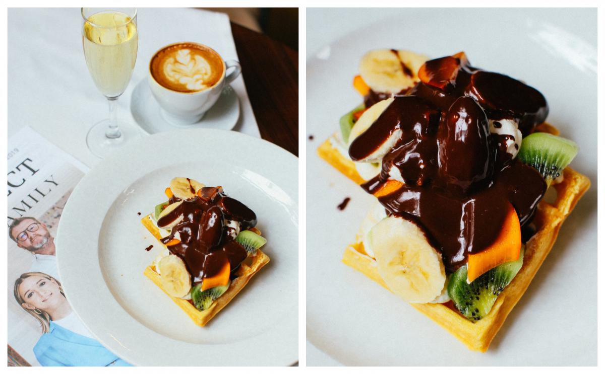 І ще про вафлі. Любителі класики оцінять традиційну версію з легким кремом та фруктами (99 грн). У поєднанні з келихом брюту — така святкова елегантність виходить. Зрештою, почати день із солодкого – добра прикмета.