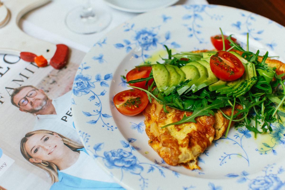 На завершення – ще трохи незмінних традицій. Омлет з сиром томатами та руколою. Ви вже, гадаємо, помітили французький акцент в нових сніданках Chicken Kyiv. Тож неперевершений omelette au fromage виглядає в меню щонайменше логічно.