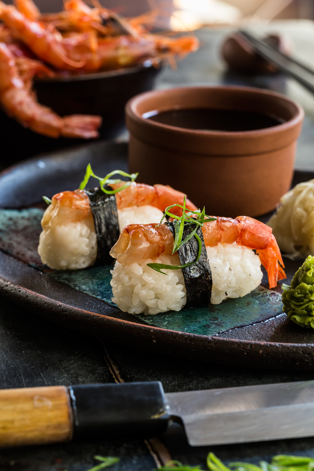 В дослідженнях з японської гастрономії, знаходимо матеріали, присвячені найсмачнішій креветці, яку радили вживати саме сирою. Ідеться про ама-ебі (за червоний колір її називали «намбан-ебі») – глибоководну креветку, якy цінили за неймовірно насичений солодкий смак.