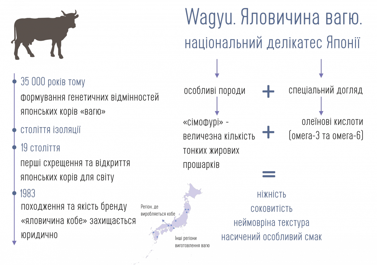 Звісно, описи тут не допоможуть – варто приходити та куштувати. Тим паче, що безпосередньо зараз проходить фестиваль делікатесної яловичини Wagyu в RONIN. Але перед тим, як анонсувати меню фестивалю, все ж таки хочемо відповісти на найбільш поширені питання щодо цього м’яса.