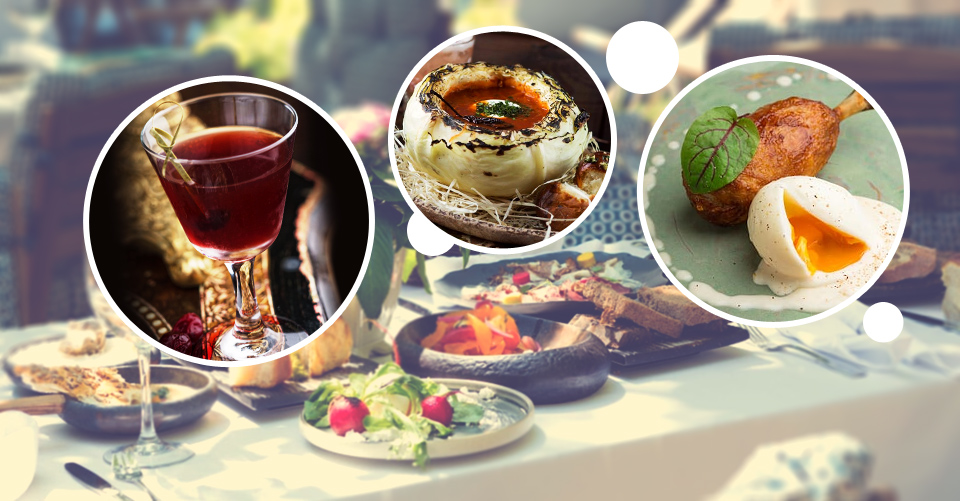 - Червоний чернігівський борщ зі свинячими вушками, чорносливом, копченою грушею та пампушками
