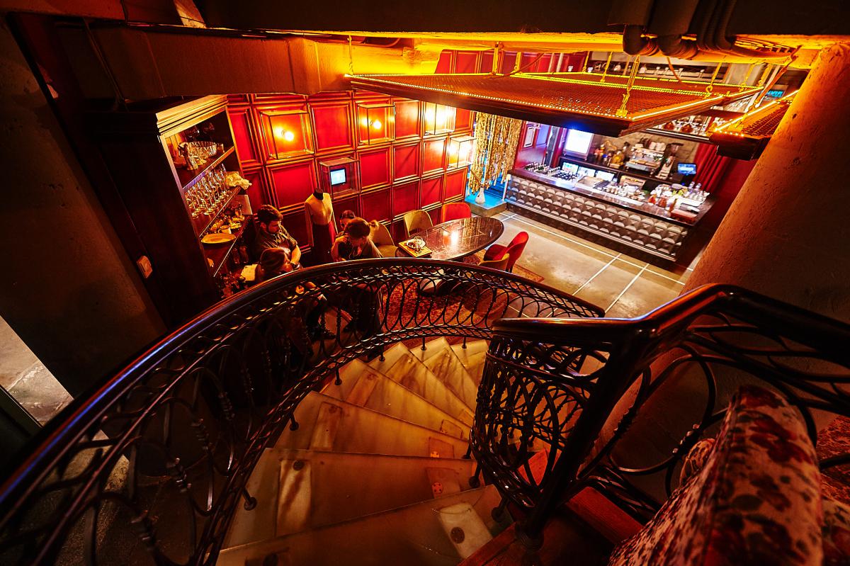 Якщо заговоритися з барменом, стільці четвертого бару випадково перемістяться в таємну залу з п'ятим баром. Тут — преміальний український алкоголь: колекційний коньяк, віскі, кальвадос. А ще тут готують каву по-галицьки — на піску. До речі, дуже смакує з сушеною вишнею або вином.