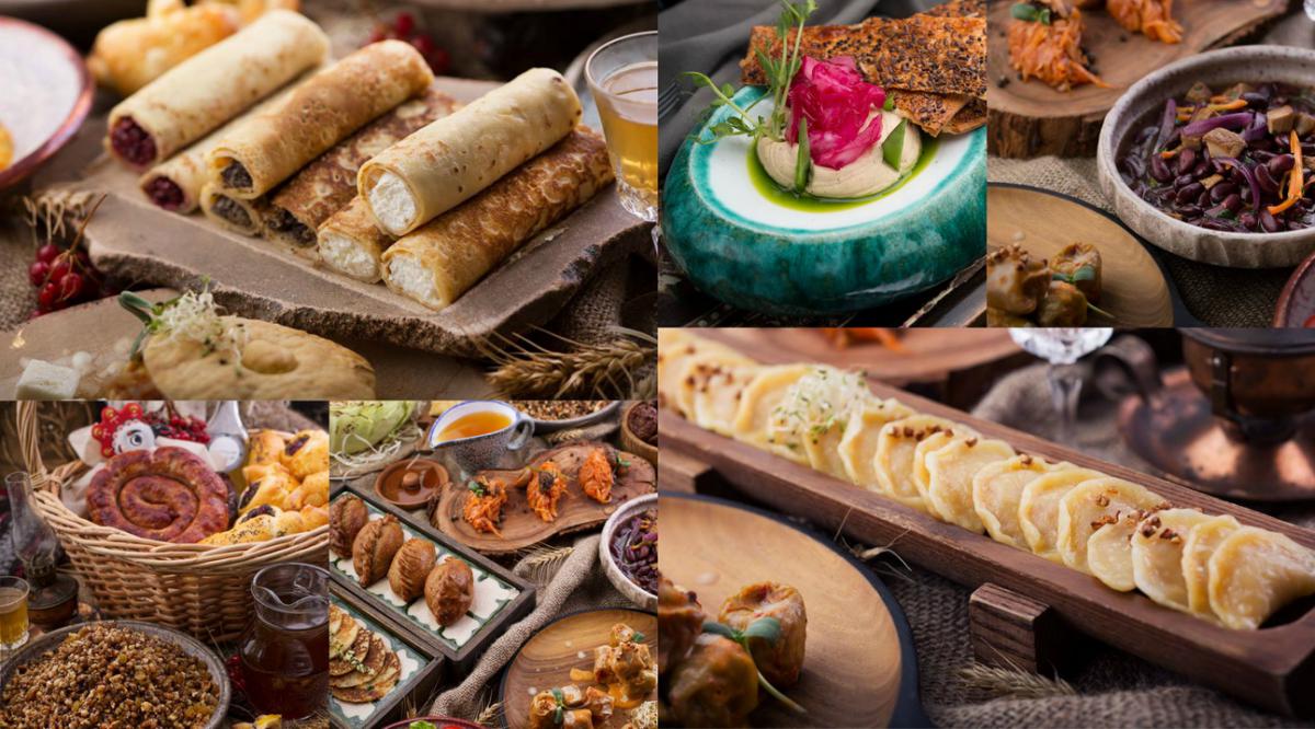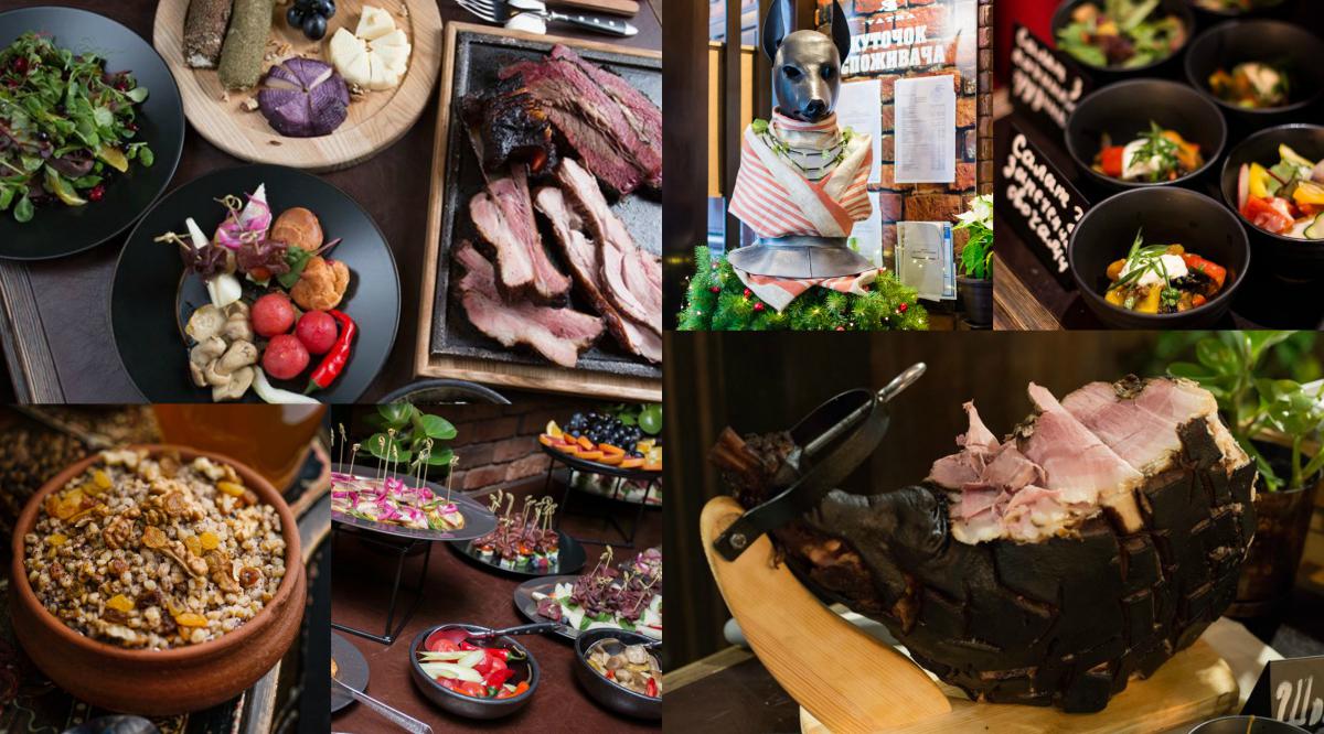 Меню: різдвяна кутя, качка з яблуками і апельсиново-імбирним соусом, гострий бограч, грибна юшка, банош з беконом, домашня ковбаса пікниця, шовдарь, філе скумбрії, індичка BBQ, ребра мангаліці BBQ, ростбіф, малосоли (гриби, огірки, помідори), салат з запеченими овочами і рікоттою, овочевий салат з сомом, помідори з моцарелою, салат з качкою, різноманітні канапки (груша з в'яленою качкою, моцарелла з томатами, свіжий огірок з сомом, сир з виноградом, оселедець з картоплею), українські сири, свіжі овочі, шоколадний торт з вишнею, імбирне печиво, еклери з вершковим кремом, сезонні фрукти, копчені яблука і груші.