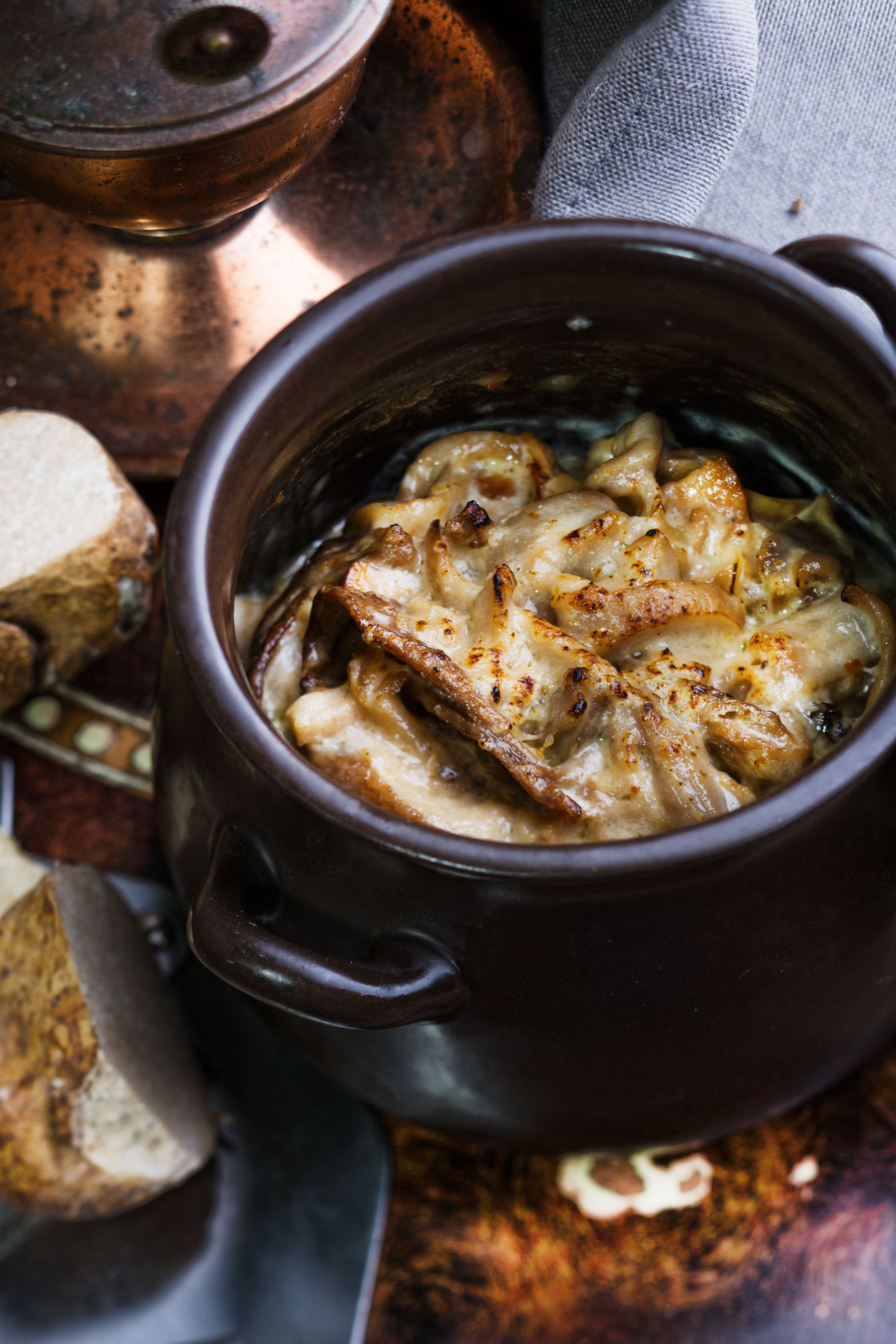 Гриби – то окрема історія. Наше натхнення. Беремо добірні білі, лисички, сморчки, трюфель та готуємо жульєн з гусячими язичками.