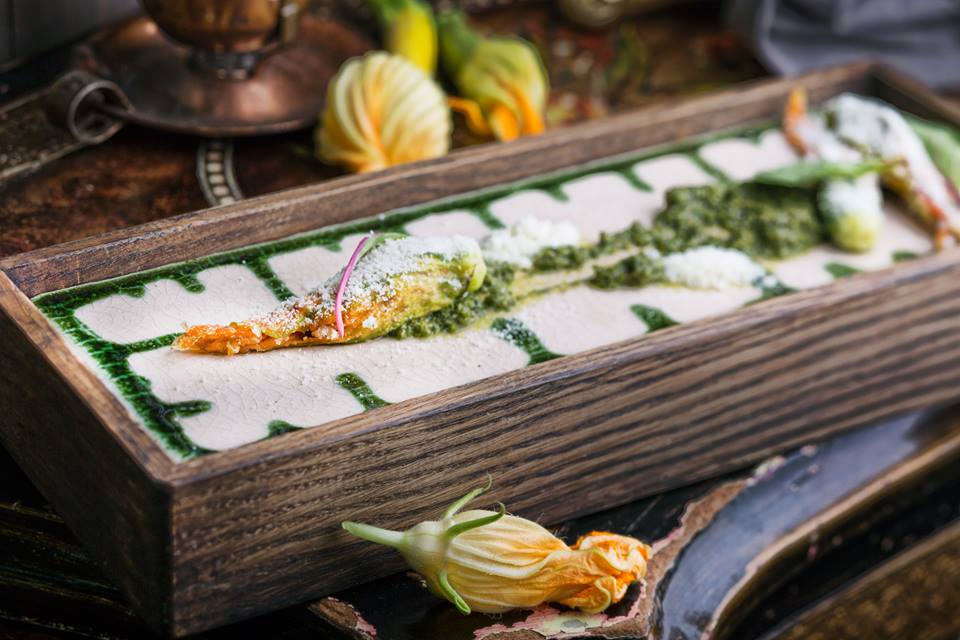 Кабачкові квіти зі смаженими лисичками та снігом із бринзи (98 гривень)