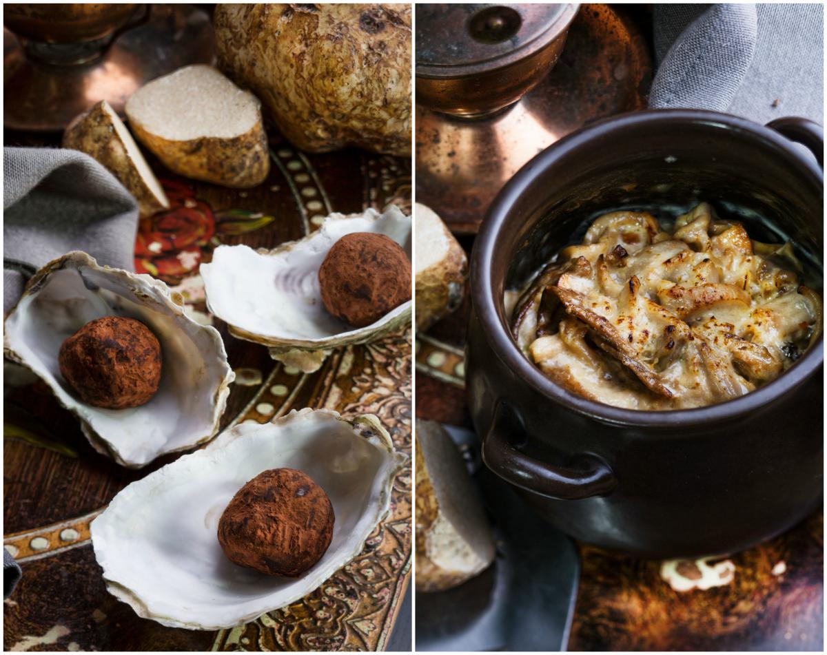 Цукерка "Трюфель" (49 гривень), жульєн з білих грибів, сморчків та трюфеля з гусячими язичками (189 гривень)