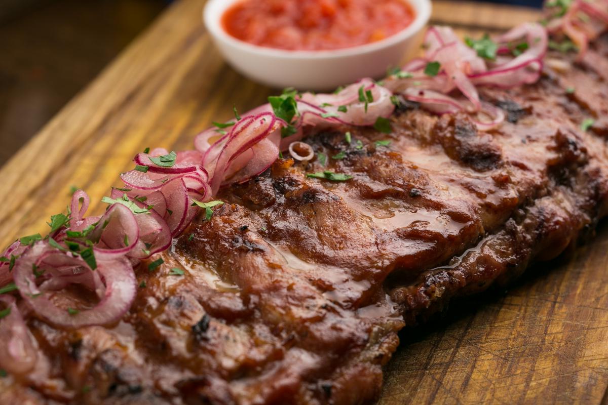 Свинячі ребра BBQ з маринованою цибулею та домашньою аджикою