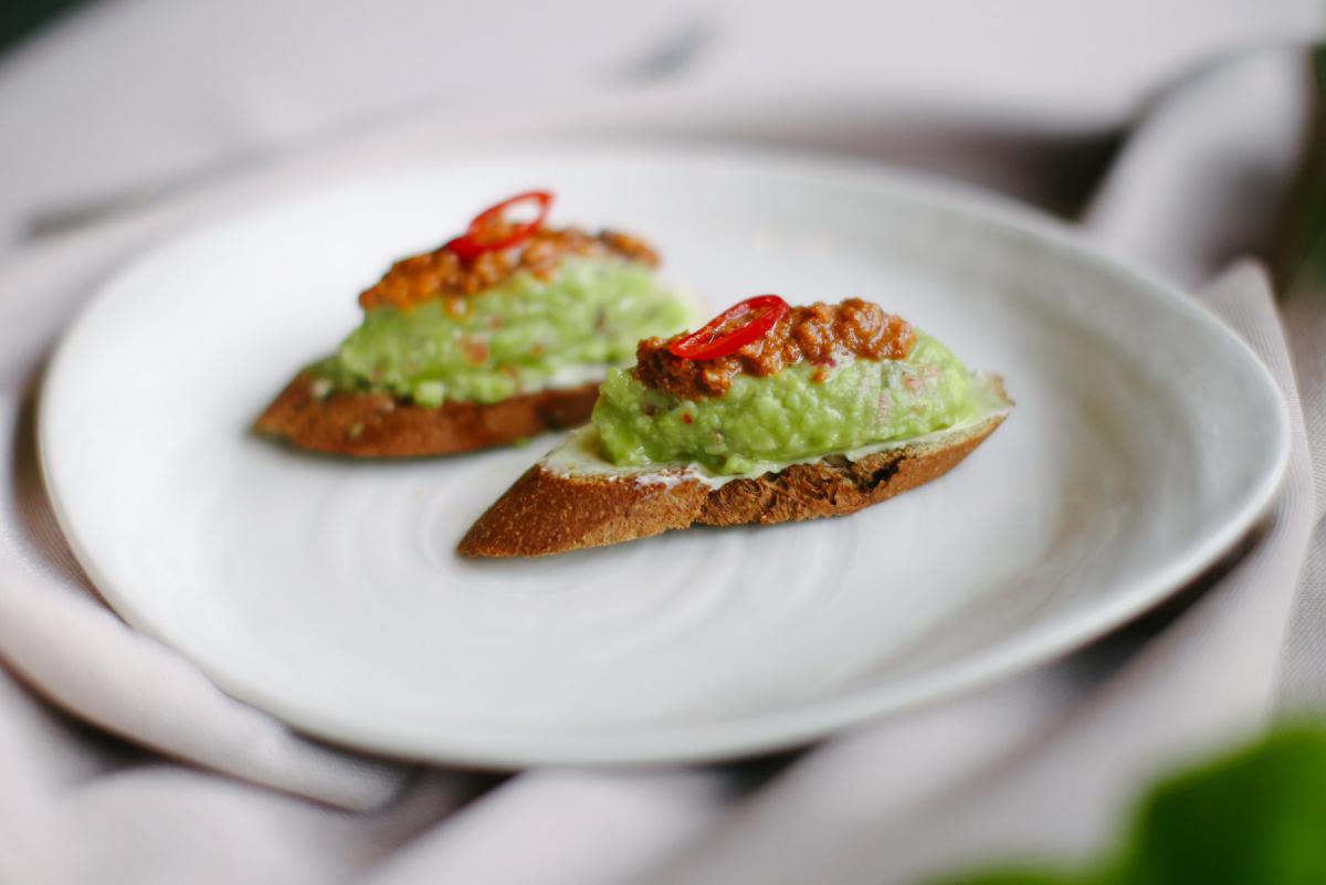 Брускета з кав'яром морського їжака і гуакамоле 139₴/3€ —поєднання атласного смаку авокадо і горіхового смаку UNI.