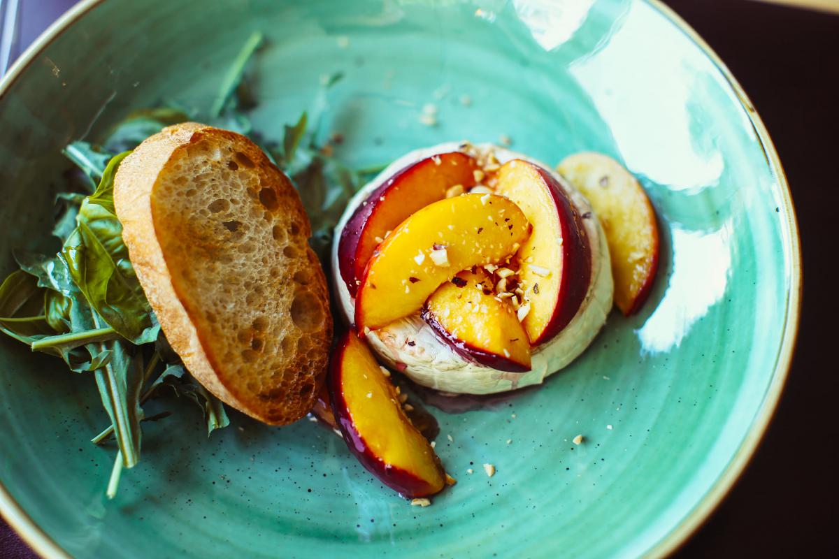 Камамбер, запечений на вугіллі з карамелізованим персиком – 139 гривень