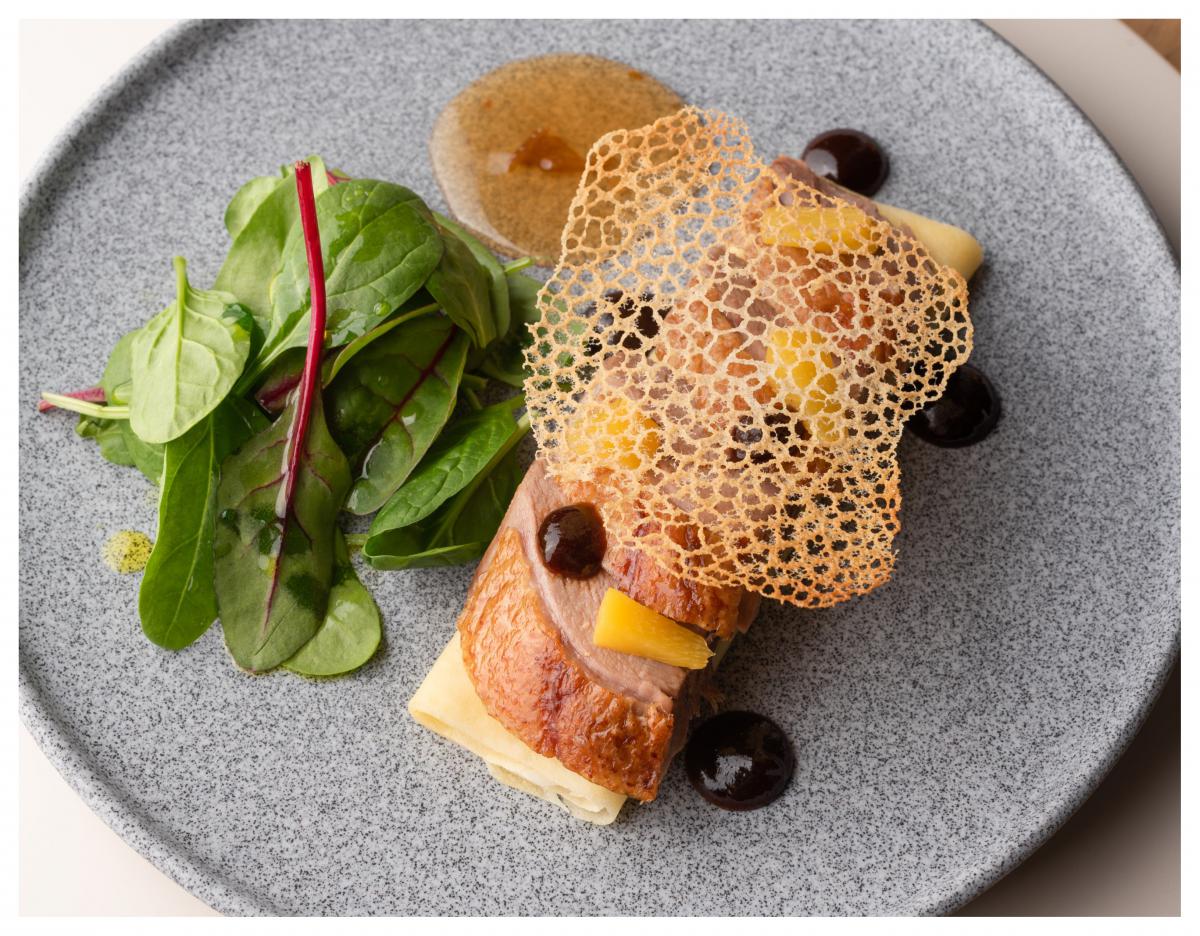 Млинці з качиною печінкою та персиком — 149 грн