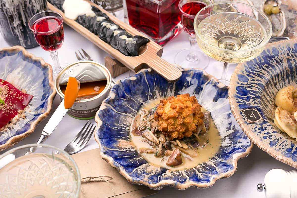 - Сет з вареників (чорні з судаком та копченим салом і вареники з зайцем та горіхами)